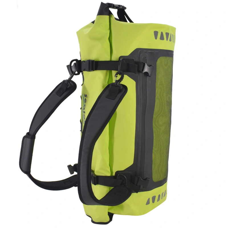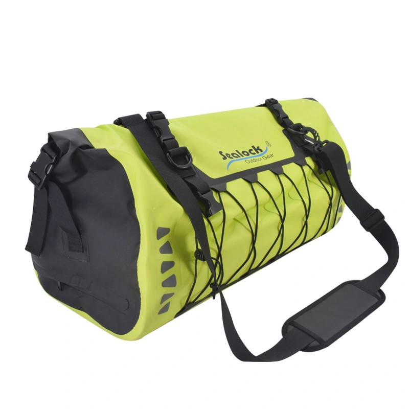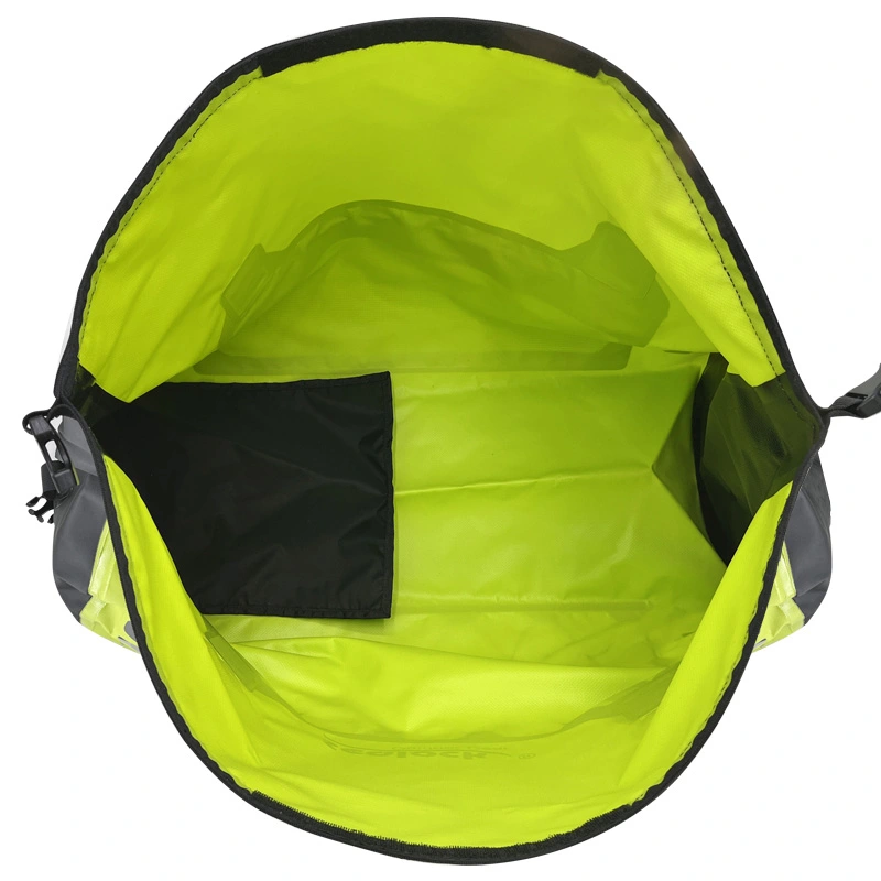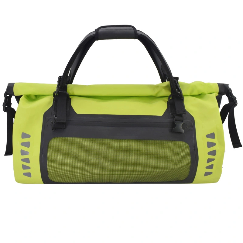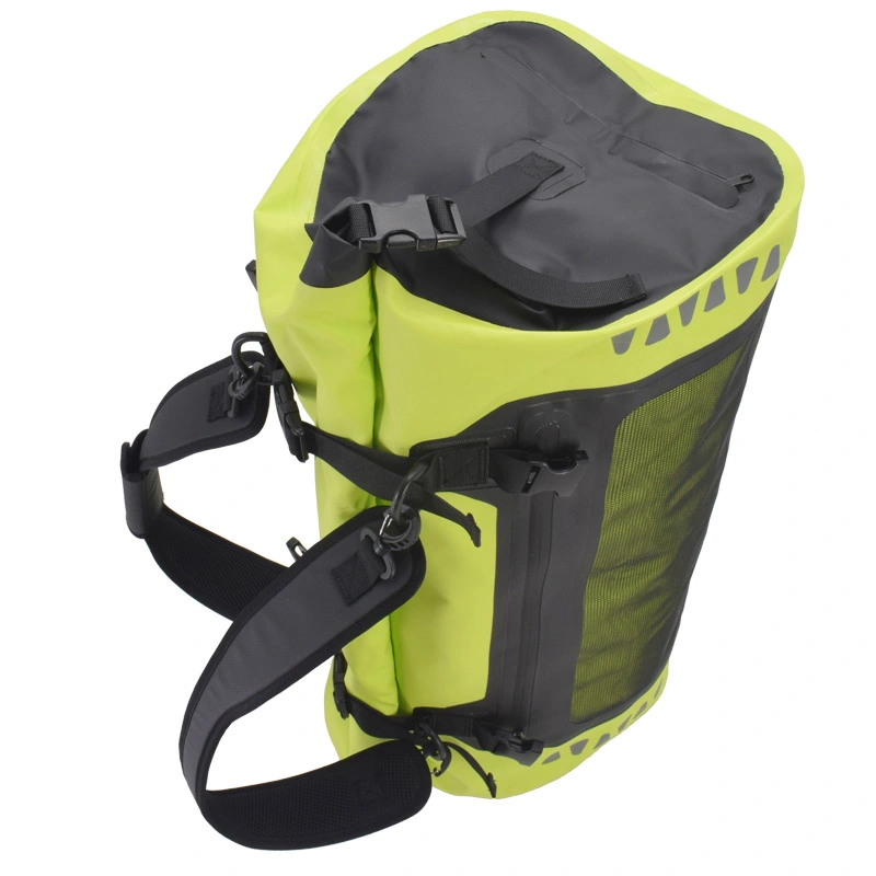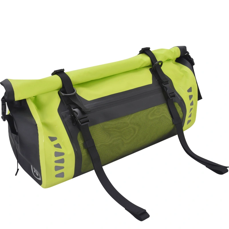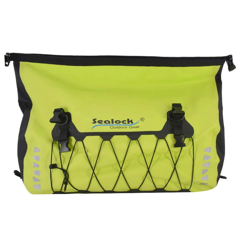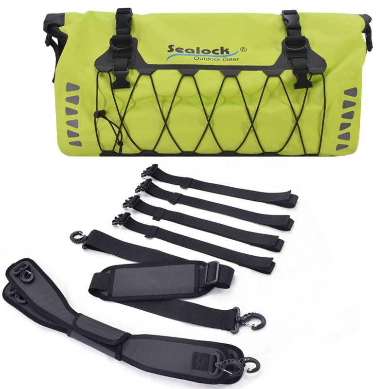 Vodotesna torba za zadnji sedež motorista, nepremočljiva, odporna na prah in vremenske vplive, izdelana iz močnega in vzdržljivega PVC materiala, brezšivno varjena, 100 % vodotesna in enostavna za čiščenje. Naj vas ne skrbi, da bosta vašo prtljago zmočila dež in sneg. Če se boste vozili na dolge razdalje, je naš nepremočljiv material za vrečke SEALOCK bolj trpežen, da bodo vaši potovalni predmeti varnejši. Na obeh straneh sta dodana odsevna logotipa za izboljšano nočno vidljivost. To je bolj ugodno za varno vožnjo.