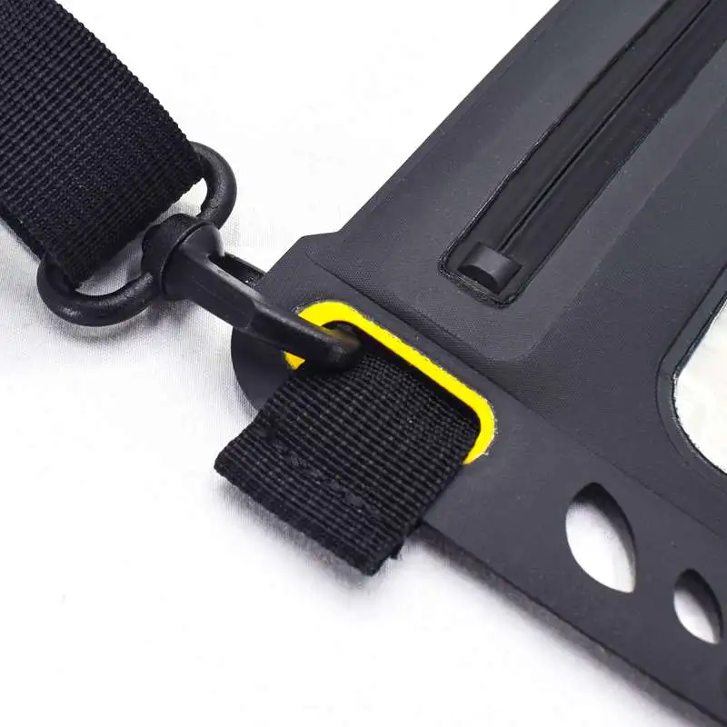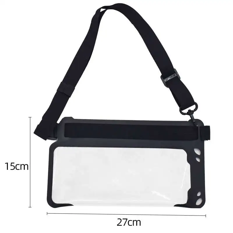 Material: Torbica mora biti izdelana iz trpežnih in visokokakovostnih materialov, ki so odporni na izpostavljenost vodi in morebitno obrabo. TPU (termoplastični poliuretan) je običajen material, ki se uporablja za nepremočljive vrečke.
